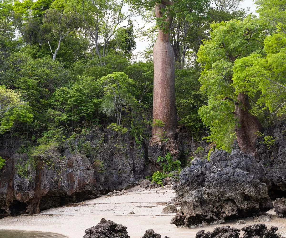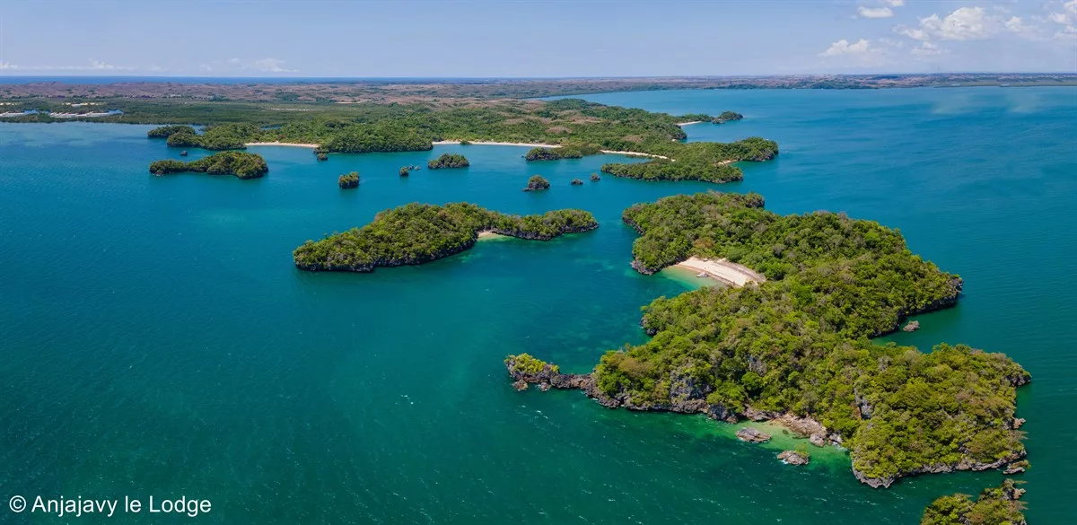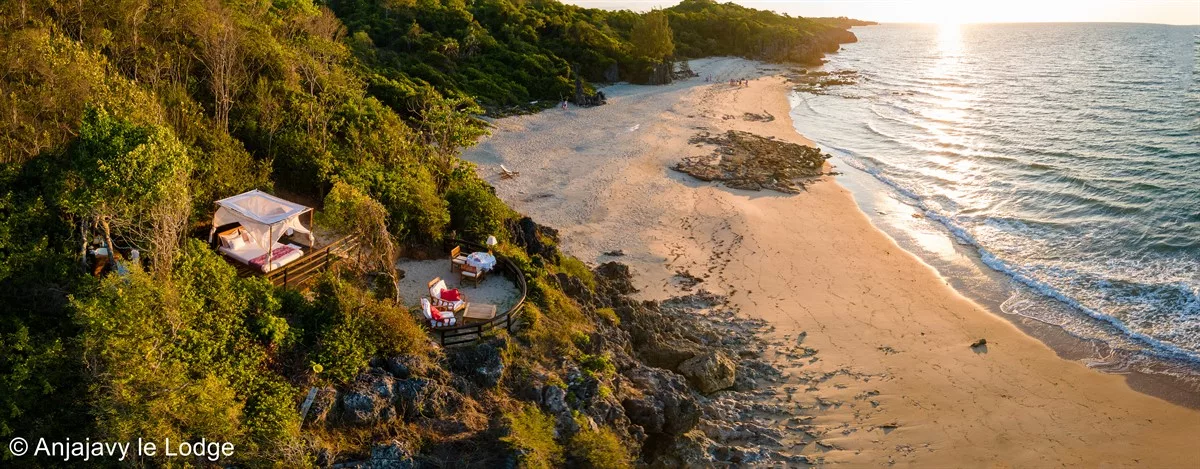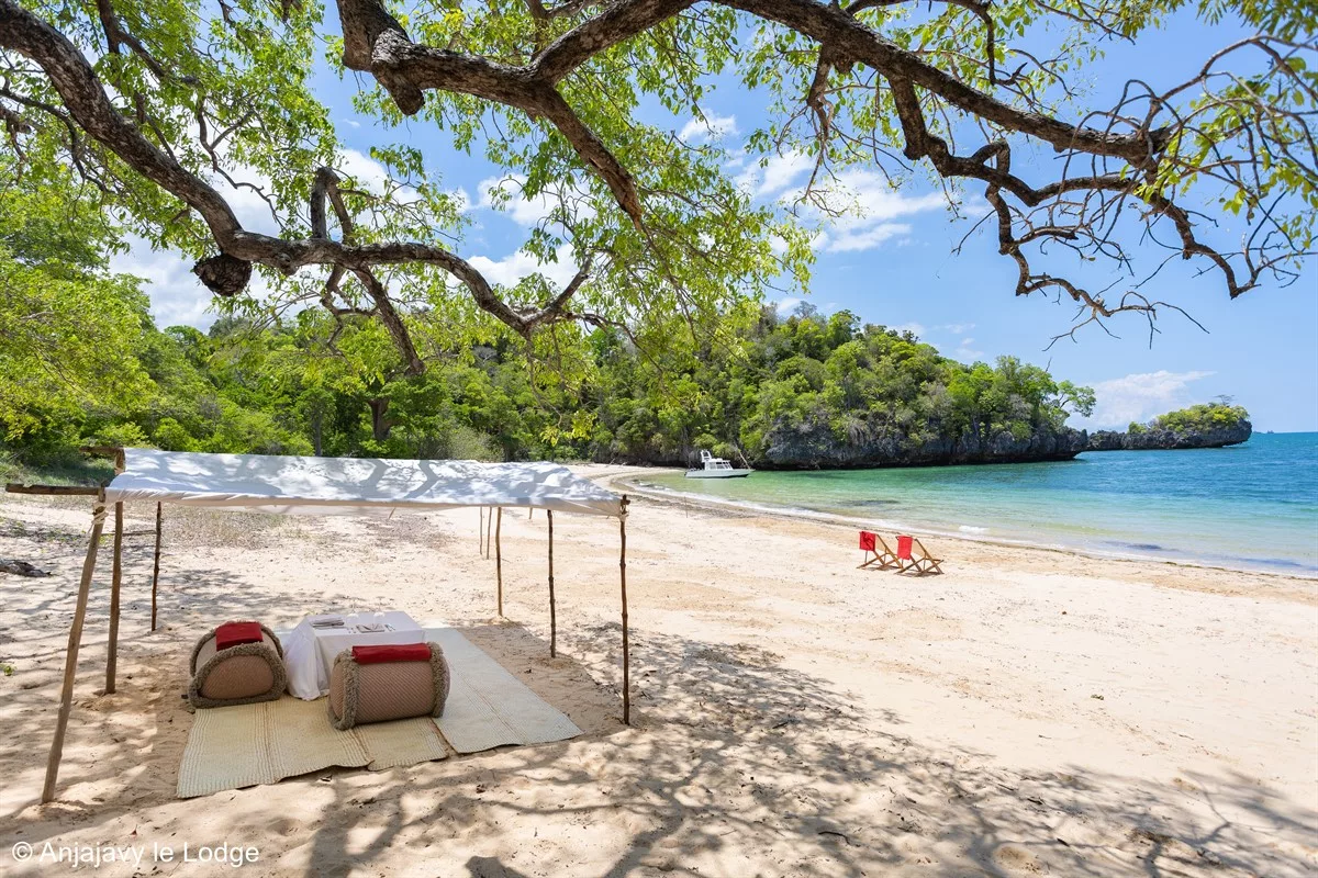 La péninsule est encerclée par une profusion de paysages éblouissants et vibrants, comprenant 12 plages immaculées, la splendide baie de Moramba avec ses îlots champignons, ornés de baobabs et deTsingy.