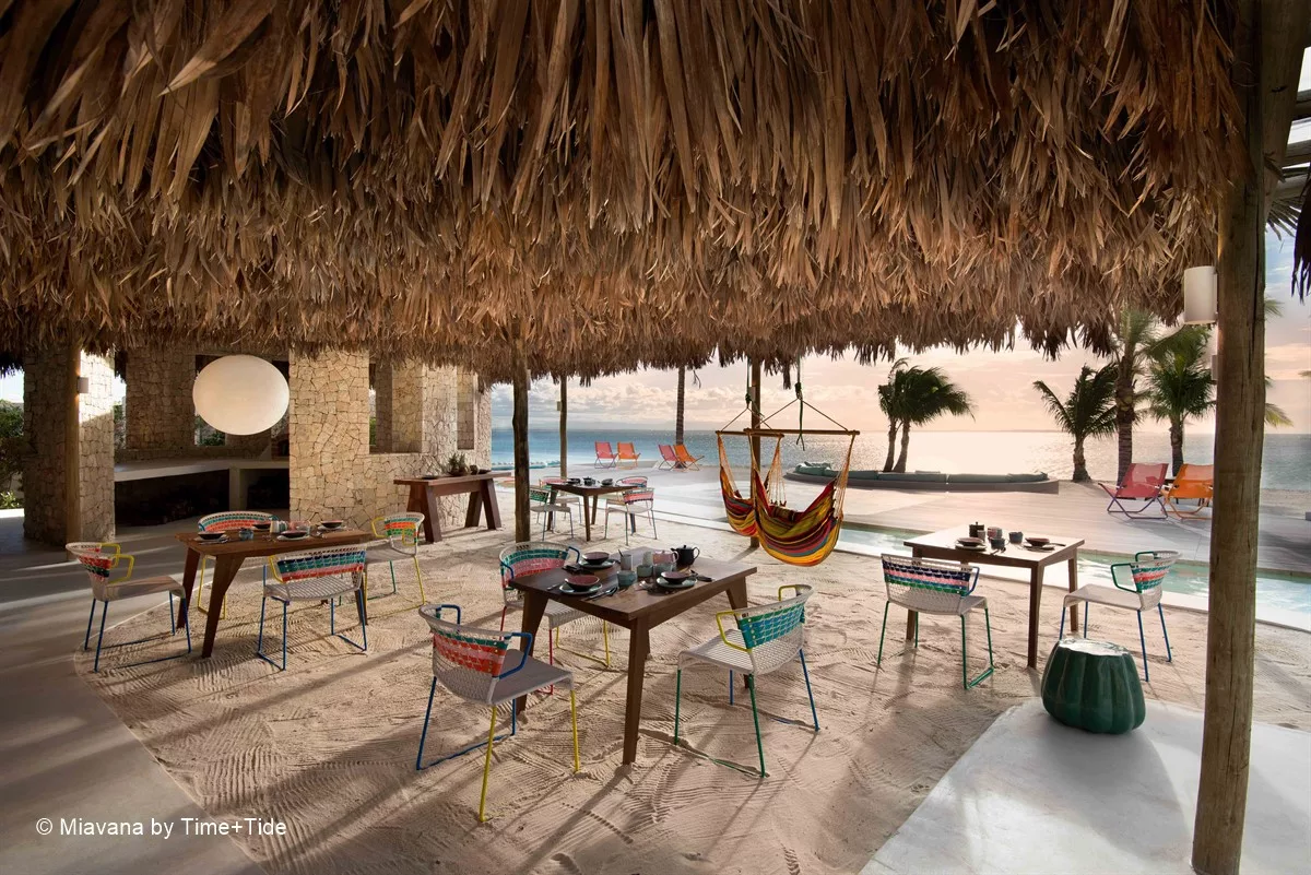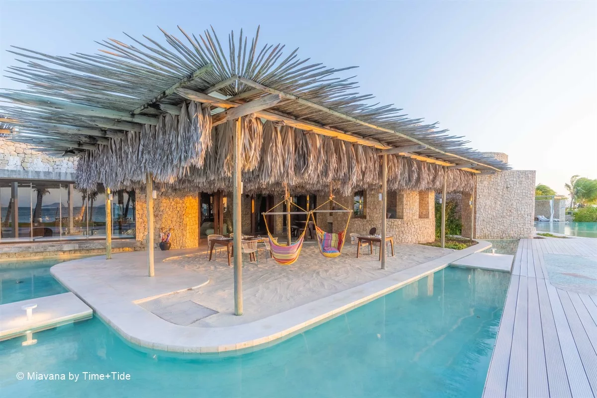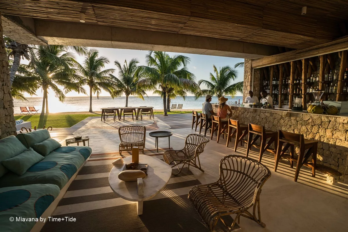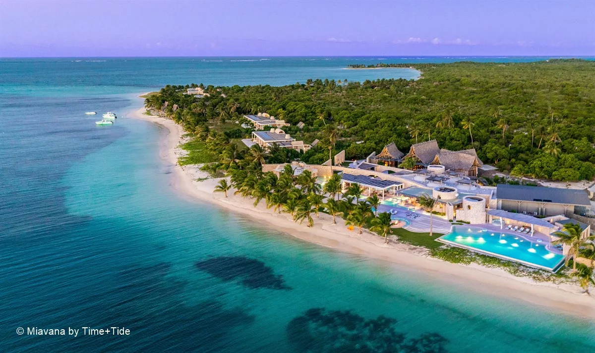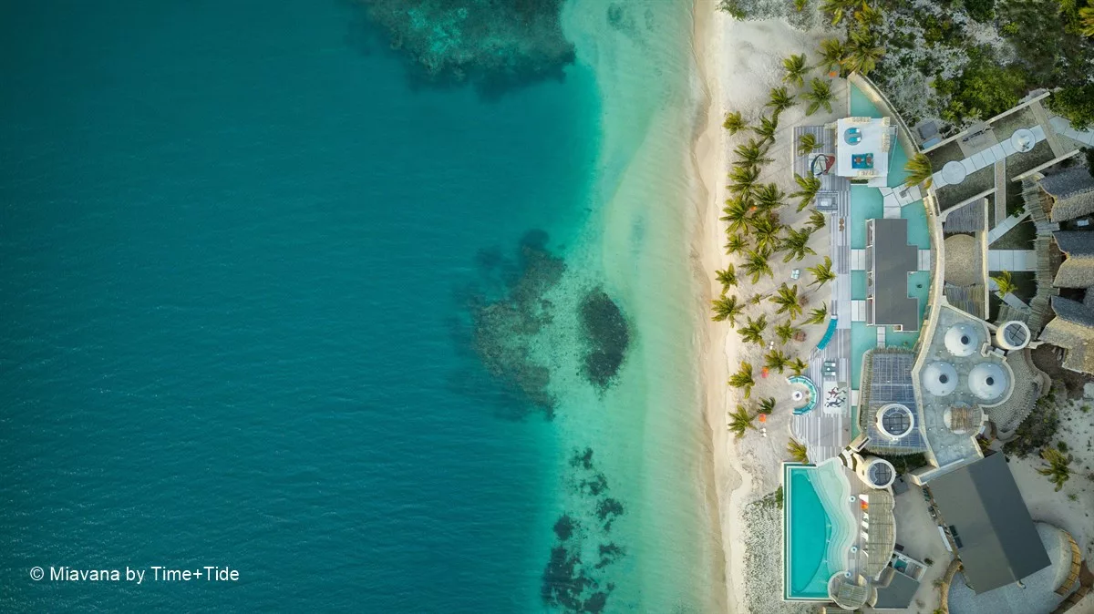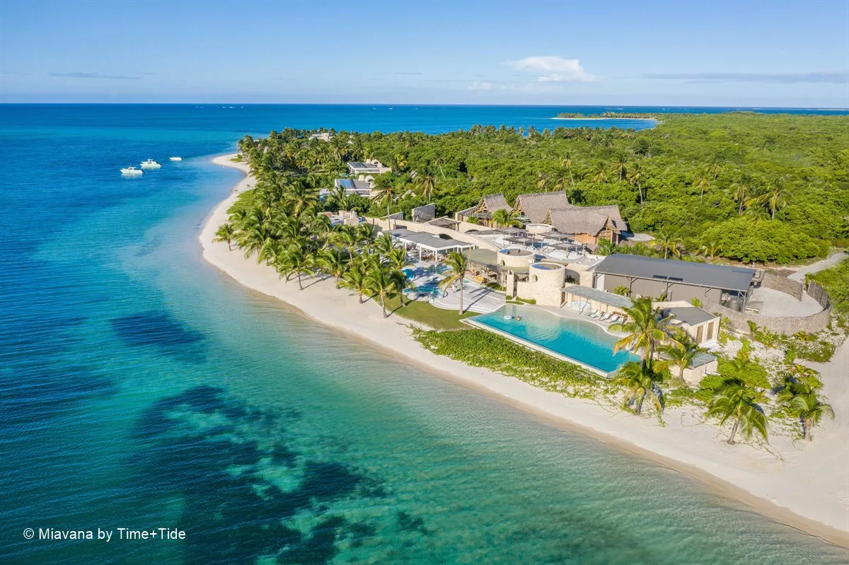 Entouré de plages de sable blanc et de récifs coralliens tentaculaires, Miavana se dresse comme un sanctuaire de luxe à l’extrémité du monde. Accessible uniquement par hélicoptère depuis les aéroports de Diego Suarez et de Nosy Be, ce havre de paix a été érigé sur l’île privée de Nosy Ankao, la plus grande des cinq îles formant un archipel isolé au large de la côte nord-est de Madagascar. Nichée au sein d’une réserve marine protégée de plus de 15 000 hectares, Nosy Ankao offre une vue imprenable sur l’océan Indien.