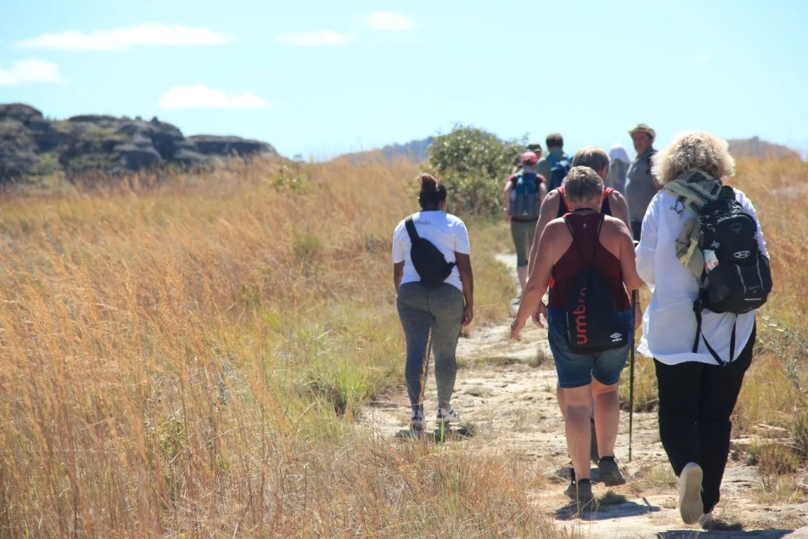 Journée de découverte du parc national de l’Isalo. On se trouve maintenant en plein Sud, avec le massif ruiniforme de l’Isalo en toile de fond. Il arbore essentiellement des sculptures étranges, fantasmagoriques taillées à même le granit. Différentes espèces tant animales que végétales spécifiques de cet habitat composent la faune et la flore. On y rencontre notamment des oiseaux, des reptiles de rochers, des amphibiens, des lémuriens et, côté plantes, des aloès et des euphorbes.